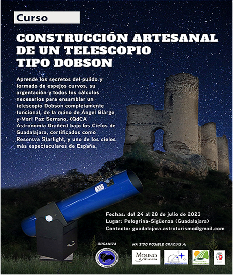 CURSO PARA CONSTRUIR ARTESANALMENTE TU TELESCOPIO DE TIPO DOBSON. Organizado por la Asociación de Astroturismo de Guadalajara. A impartirse en la localidad de Peregrina.