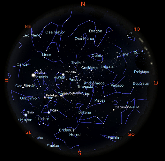 En esta sección describimos la posición de las constelaciones más importantes, así como la de los planetas, e informaremos sobre los eventos astronómicos de interés.