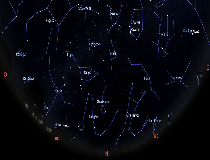 El cielo, mirando hacia el Norte